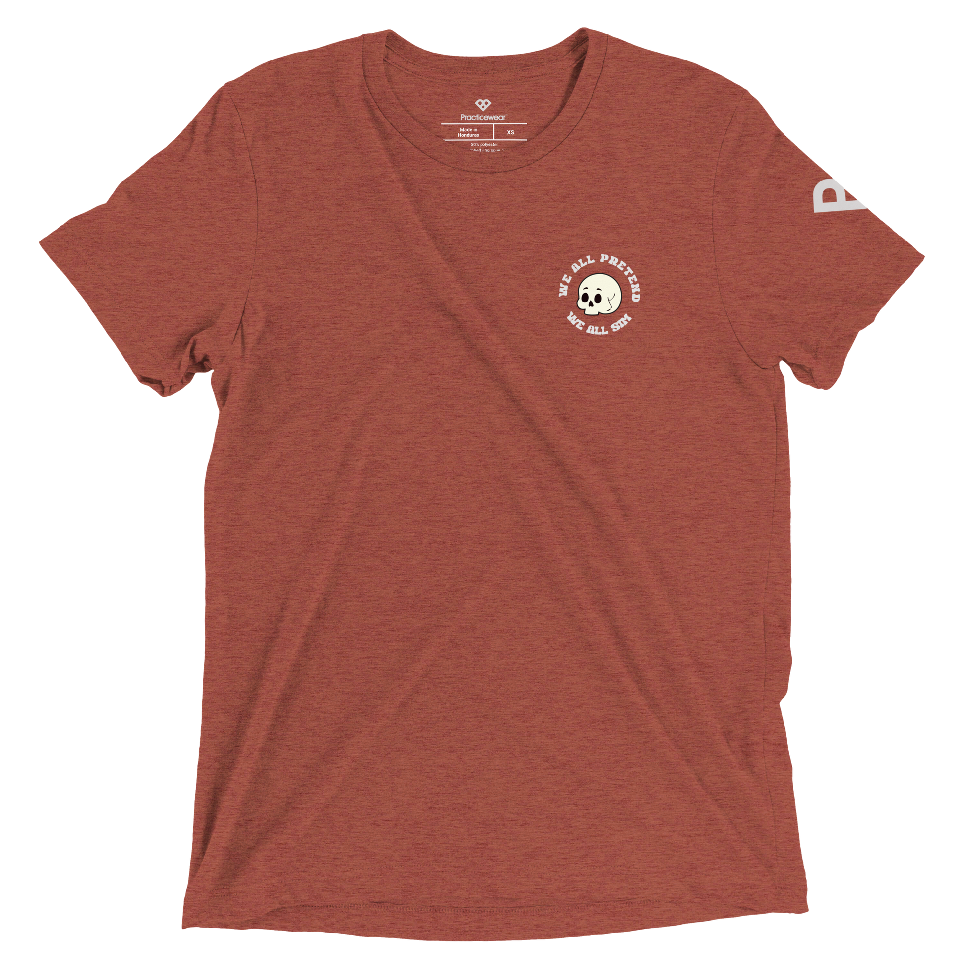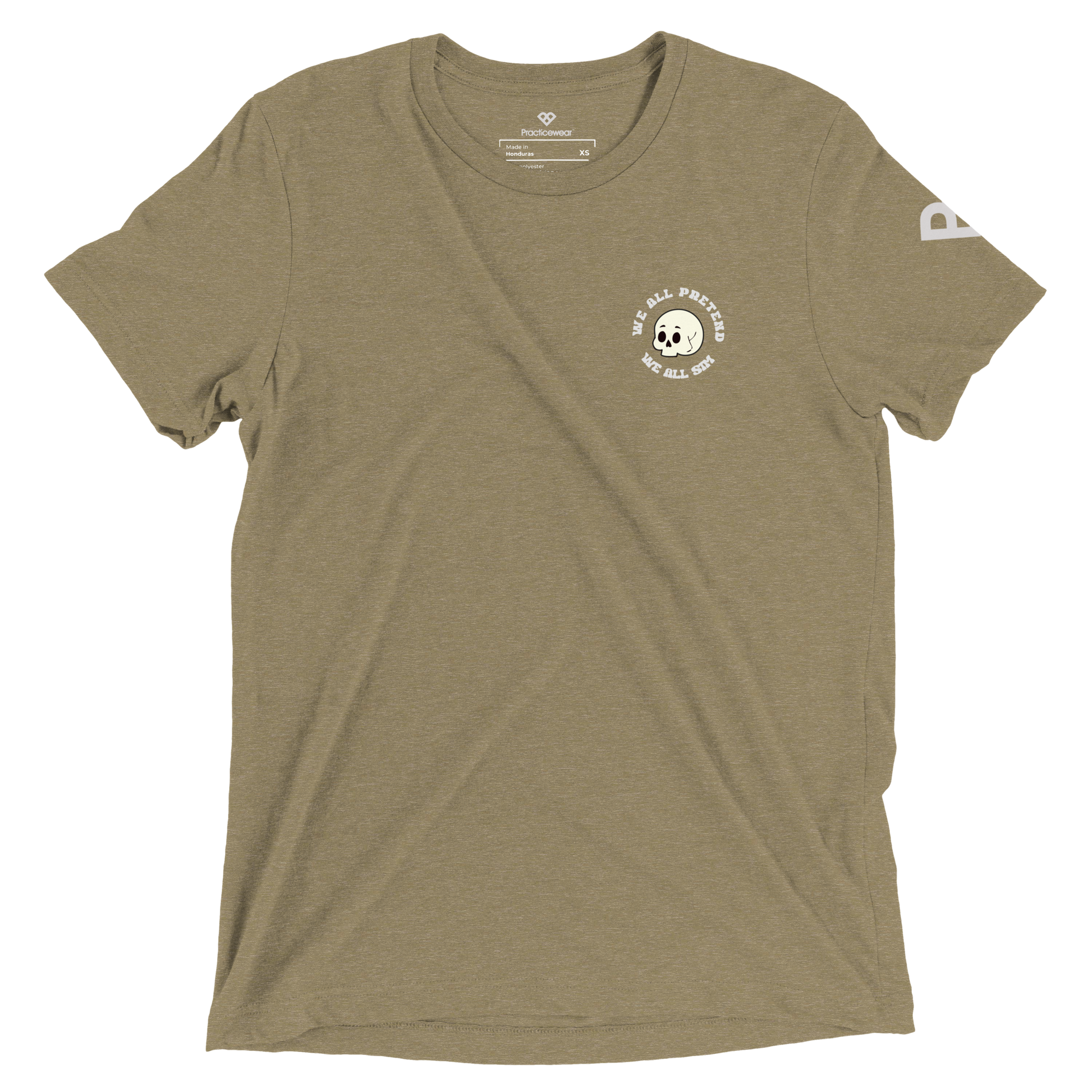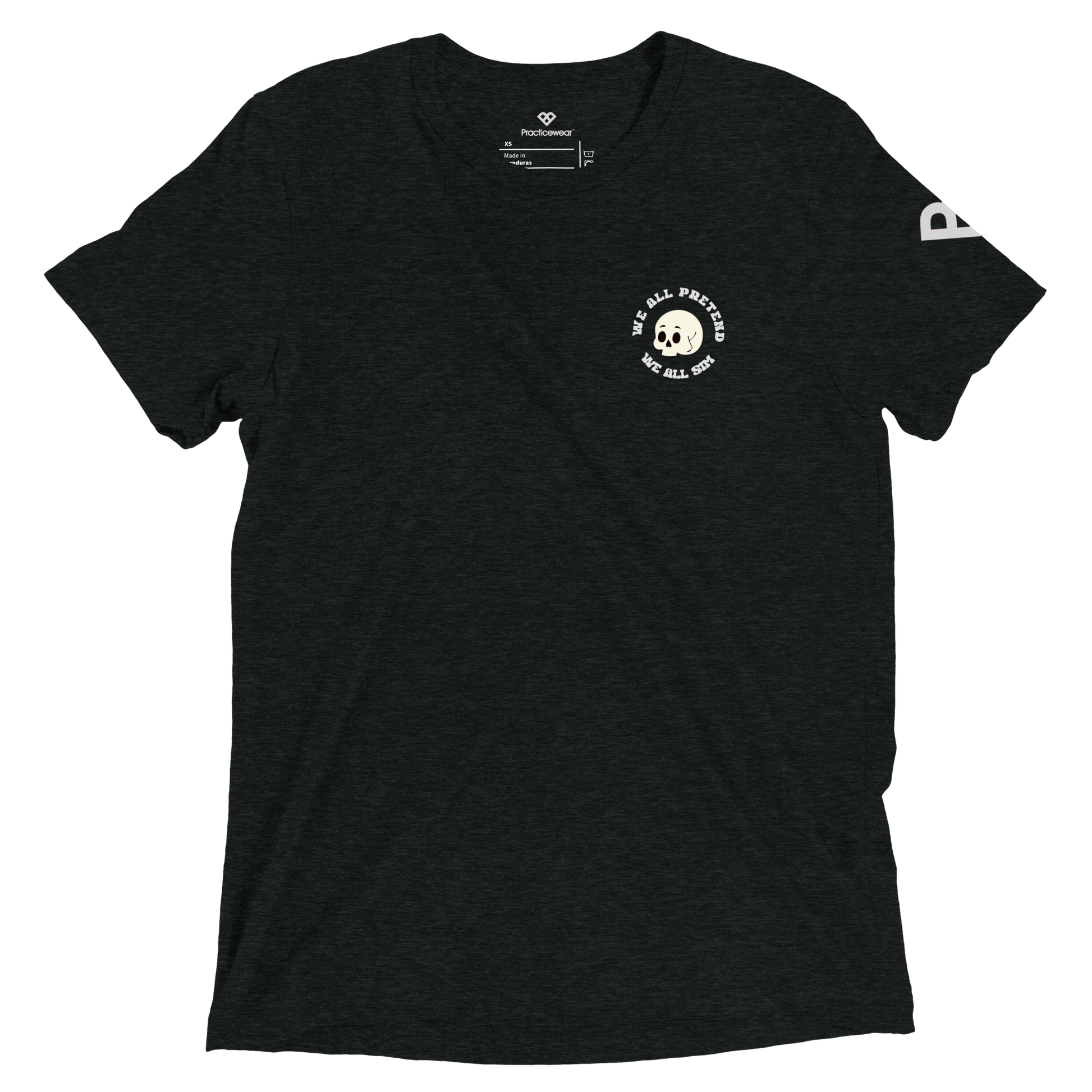 • Front print: “We All Pretend, We All Sim” skull emblem